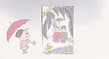 Au début du film, on trouve une longue métaphore sur la vie conjugale, apparentée à un voyage. Démarrant avec l'image de Takashi et Matsuko descendant leur gâteau de mariage en bobsleigh, puis enchaînant sur un voilier, un tracteur, une barque pour finir sur un escargot (on remarquera que le moyen de transport est de plus en plus lent et de moins en moins excitant !), elle montre comment la famille Yamada a grandi tout en venant à bout des intempéries passagères de la vie.