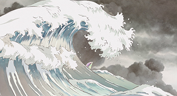 Autre référence artistique, Takahata rend un hommage furtif à l'une des estampes les plus connues mondialement, La grande vague de Kanagawa d'Hokusai, lorsque les époux Yamada subissent une lourde tempête.
