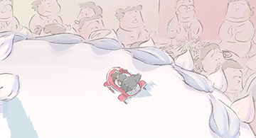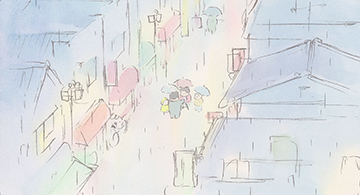 « Nous avons essayé de produire un dessin animé dans le style de l’aquarelle et je pense que les images sont assez réussies », ajoute le directeur de l’animation. « Nous voulions donner l’impression d’aquarelles dessinées à la main. Nous y sommes vraiment parvenus. Nous avons même créé des images très originales. Je pense que l’histoire du film et les dessins sont en totale harmonie. C’était notre but ultime. »