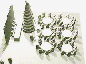 Ces scènes sont entièrement conçues dans un espace tridimensionnel. À partir de celui-ci et du mouvement de caméra validé, suivant la descente le long de la pente en spirale, l’animation des personnages a été dessinée à la main. Ces scènes ont donc combiné les deux techniques d’animation.