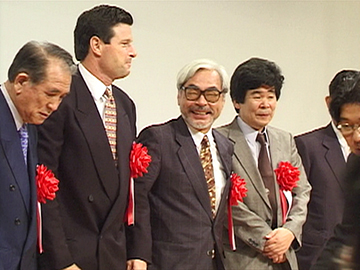 Sur Les Yamada, Hayao Miyazaki n'est pas producteur comme sur les 2 précédents longs métrages d'Isao Takahata. Il est néanmoins présent à la conférence pour soutenir la production.