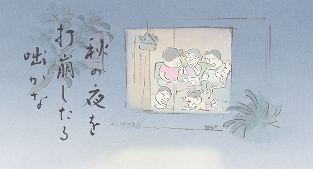 Les nuits d’automne sont généralement tristes. Toute la famille Yamada s’est perdue, à l’exception de Nonoko. C’est une histoire incroyable et très amusante. Ceux qui la racontent, ceux qui l’écoutent, tous rient aux éclats. Leurs rires brisent le silence de la nuit. Quelle bonne soirée !