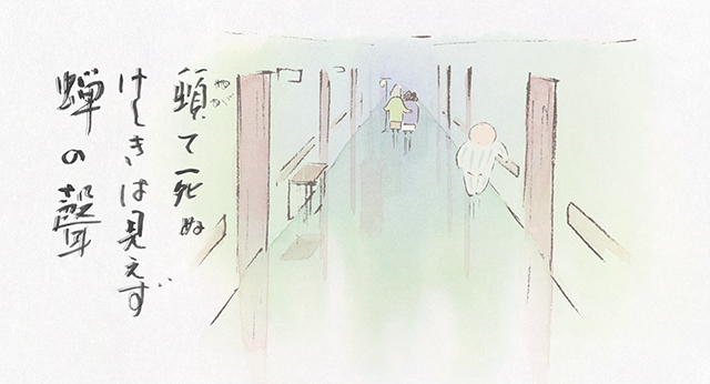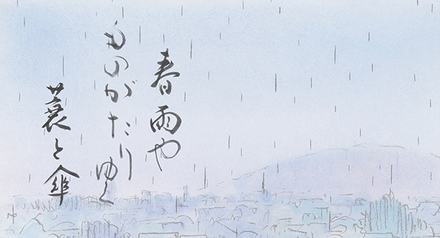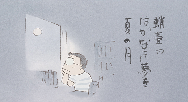 À la fin du scénario de mon dernier dessin animé, Pompoko, j'avais écrit un haiku qui résumait tout le film : « Un blaireau d'abord joyeux et triste ensuite ». Ce poème est une adaptation du magnifique texte de Bashô : « Une pêche au cormoran d'abord joyeuse et triste ensuite ». Dans la bande-annonce du dessin animé, mon haiku était récité par un maître de rakugo (Ndt : histoire comique dite et mimée par des conteurs publics), Shinchô Kokontei. Je n'ai malheureusement pas pu le mettre dans le film.