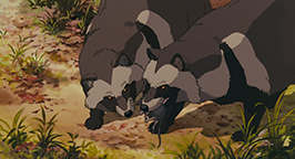 À partir de ce moment, les tanuki commencèrent à se battre pour les territoires. La recherche de la nourriture était de plus en plus difficile et des groupes de tanuki désœuvrés pullulaient partout dans les forêts.