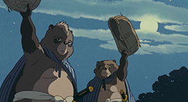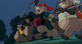 À l'automne de la 31ᵉ année de Pompoko se déroule l'ultime bataille entre les tanuki de Tamakyûrô sur un chantier, entre les forêts de Suzuka et Takaga. Alors que les tanuki s'élancent, ils se mettent sur deux pattes, se transforment en tanuki « humanisés », et brandissent des bâtons.