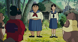 Mais l'entraînement est aussi l'occasion d'étudier des situations plus posément, notamment quand il pleut, comme le font les tanuki sous l'égide de l'ancien, qui leur enseigne une parabole sur la crédulité des tanuki.