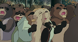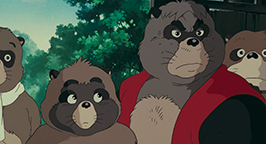 Une femelle tanuki, Okiyo commence l'histoire de Pompoko : jusqu'au milieu du vingtième siècle, les tanuki vivaient en harmonie près des fermes, près des rizières et des champs, se nourrissant des petits rongeurs parasites, ou volant quelque nourriture. Quand les humains partirent, les tanuki s’installèrent dans les maisons abandonnées. Jusqu'au jour où les hommes revinrent avec des pelleteuses pour détruire les anciennes habitations...
