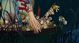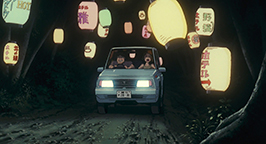 Puis le défilé commence par l'arrivée d'un ancien sur un cheval. Suivent une procession de renards, des lampions, des diables, des danseuses minuscules, des dieux faiseurs de pluies. Les humains sont enchantés par ces magnifiques apparitions. C'est l'occasion pour deux vieux de se remémorer les défilés de renards de leur jeunesse.