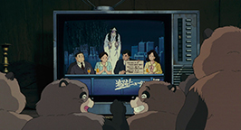 Pour s'informer et se renseigner sur les humains, les anciens décident alors d'installer un poste de télévision dans le temple, lieu de réunion. La télévision est ramassée par une bande de tanuki après qu'un humain est venu s'en débarrasser sur une décharge sauvage. La première réaction des tanuki face à la speakerine leur souhaitant bonsoir est de lui répondre. L'intérêt des tanuki pour la télévision est tel qu'ils se mettent à se regrouper pour la regarder pendant la journée, sans autorisation, mais avec grand enthousiasme.