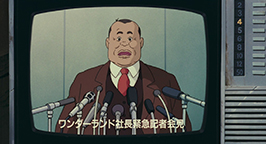 Hélas, le lendemain les tanuki ont une bien mauvaise surprise au réveil : un président d’une entreprise sans scrupules a fait passer leur défilé pour un promotion pour son parc d'attractions, Wonder Land. La conférence de presse de ce dernier, rondement menée, convainc parfaitement les médias ; les tanuki doivent se rendre à l'évidence : ils se sont fait berner.