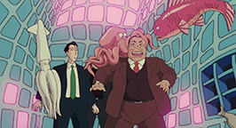Le soir même le renard invite Kinchô pour discuter de la situation. Tous les tanuki sont si désespérés qu'ils ne remarquent en rien la disparition de ce dernier. Devant un dîner dans un club, entouré de renardes, Ryûtarô propose à son invité de convaincre les tanuki d’une insertion en douceur dans la société humaine, en s'engageant au Wonder Land par exemple. Ne voulant pas abandonner les tanuki qui ne savent pas se transformer, la décision pose un véritable problème de conscience à Kinchô.