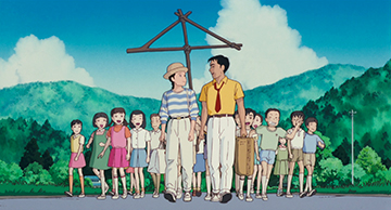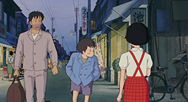 Elle descend à l'arrêt suivant et retourne vers le village et Toshio, accompagnée et encouragée par la petite Taeko qui court à ses côtés...