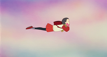 Cependant, Souvenirs goutte à goutte transcende véritablement le film en prise de vue réelle et ne se contente pas de filmer de manière réaliste le quotidien d'une jeune japonaise. Il transcende son histoire en utilisant tout l'art du dessin animé, offrant au spectateur de véritables moments d'émotion qu'un film live n'aurait peut-être jamais atteint. Ainsi la scène où Taeko chante, s'envole et où un arc-en-ciel arrive est un moment plein de poésie, qu'un film n'aurait peut-être pas su retranscrire sans sombrer dans le kitsch ou le ridicule. Takahata choisit également avec soin les plans et cadres mettant en valeur sa petite héroïne. Lorsque, privée de répliques, la petite fille fait un simple geste avec ses mains, le temps semble se suspendre autour de ce court et fugitif moment, l'action se fige, et toute l'attention du spectateur est concentrée dans ce simple mouvement, qui prend toute son ampleur et toute sa force. C'est là la magie de l'animation qui peut jouer bien plus aisément avec le décor et les personnages superflus à l'action, mais c'est surtout tout le talent de Takahata, qui a bien compris qu'une animation peut se passer de subterfuges clinquants et d'actions à tout-va et que l'émotion se noue souvent autour de gestes simples et de moments furtifs.