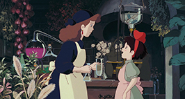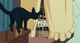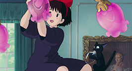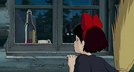 La mère, étonnée de ce départ précipité, rate sa potion magique, laissant échapper de l'éprouvette un nuage noir. Quelques instants plus tard, Kiki prépare déjà ses affaires pour le départ. Jiji, son petit chat noir, n'est pas emballé à l'idée de partir si vite. Mais Kiki est bien décidée. Elle annonce d'ailleurs sans détour la nouvelle à son père qui vient de rentrer. Pour ce voyage Kiki reçoit en cadeau la radio de son père. Elle se voit aussi affublée d'une traditionnelle robe noire qu'elle ne trouve pas jolie mais comme dit sa mère l'apparence n'est pas le plus important ; ce qui compte c'est le cœur qui se cache derrière.