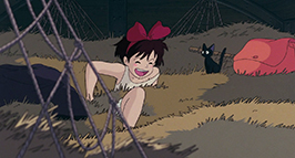 Kiki est une jeune sorcière. Couchée dans l'herbe, elle écoute attentivement la petite radio à pile de son père. Le bulletin météo de la soirée annonce une nuit de pleine lune sans couverture nuageuse. Kiki a bientôt 13 ans et, comme le veut la tradition, elle va devoir quitter sa maison pour travailler pendant un an dans une ville sans sorcière. En entendant les prévisions météo, Kiki prend la décision de partir cette nuit même et retourne chez elle afin de prévenir ses parents.