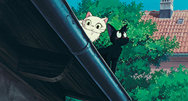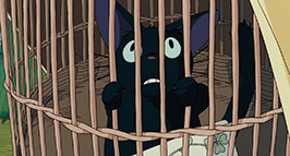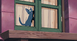 Une fois la poupée remise à neuf, Kiki s'envole pour récupérer Jiji. Pendant ce temps Jeff, le chien qui fait tant peur à Jiji, s'avère tout à fait pacifique et s'est même pris d'affection pour le chat. Le prenant dans sa bouche, il sort de la maison pour le libérer. Kiki effectue alors l'échange avec la peluche et remercie le chien qui retourne à l'intérieur.