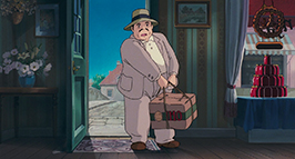 Le lendemain, en donnant de ses nouvelles à Osono, Kiki apprend que la vieille dame qu'elle avait aidée lors d'une de ses dernières livraisons, la demande. La jeune fille écourte alors son séjour et se rend directement chez sa cliente. Celle-ci l'a fait venir pour lui offrir un gâteau afin de la remercier d'avoir été si serviable la dernière fois. Très émue Kiki essuie une larme avant de remercier chaleureusement la vieille dame. Martha la servante allume alors la télévision pour assister au décollage du dirigeable. Mais de grands vents le secouent et ce dernier se détache et s'envole malgré la foule qui essaie de le retenir.