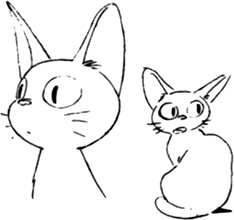 Jiji est le petit chat noir de Kiki (toutes les jeunes sorcières en ont un). Il a été élevé depuis sa naissance avec la jeune sorcière et tous deux peuvent se comprendre. Faisant régulièrement des remarques ironiques voire désobligeantes à Kiki, Jiji est toutefois très attaché à son amie comme le prouve son dévouement lorsqu'il prend la place de la poupée-chat perdue.