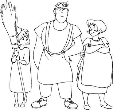 La vieille Dora habite le village où Kiki est née. C’est une fidèle cliente de Kokiri. Elle la consulte pour soigner ses rhumatismes.