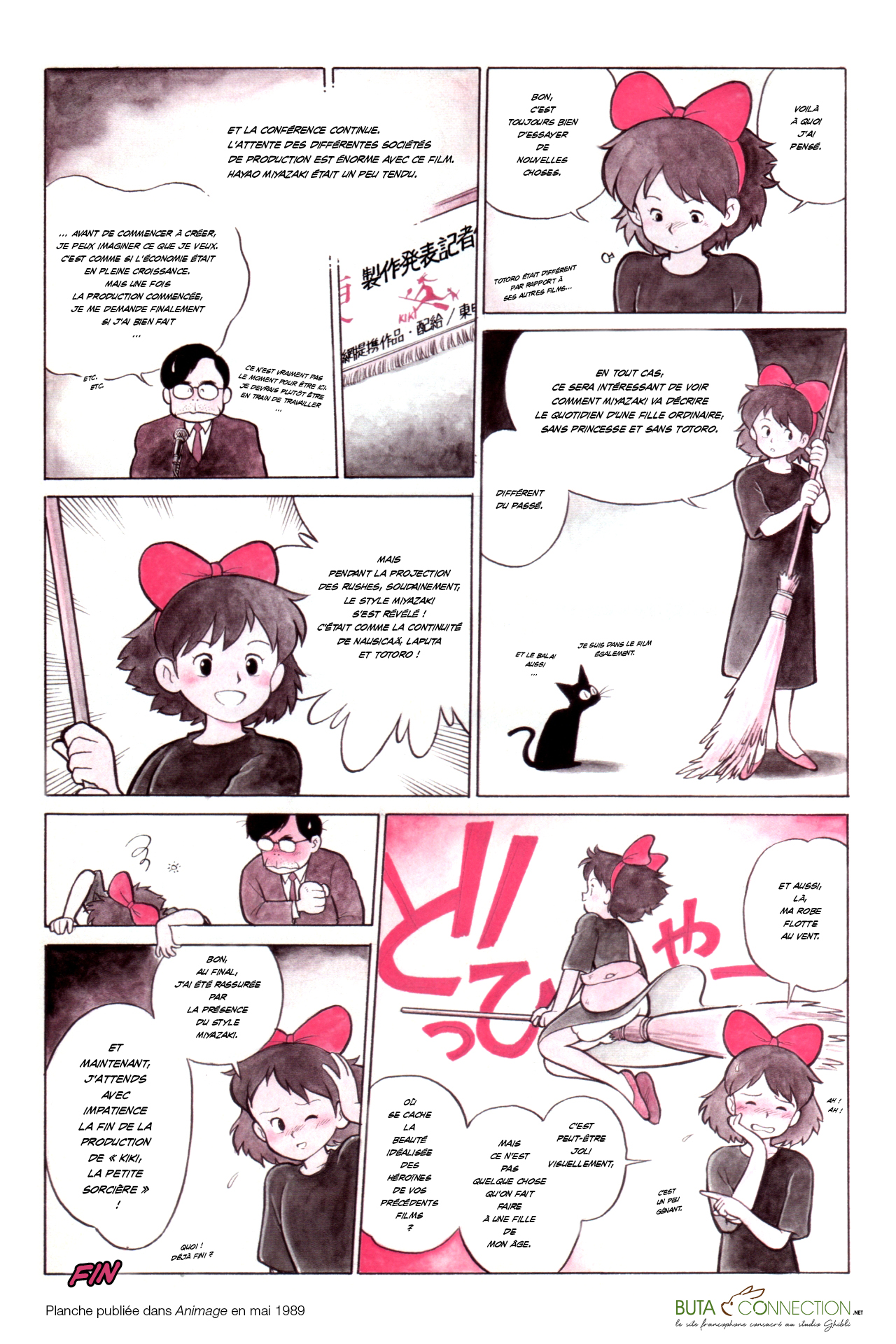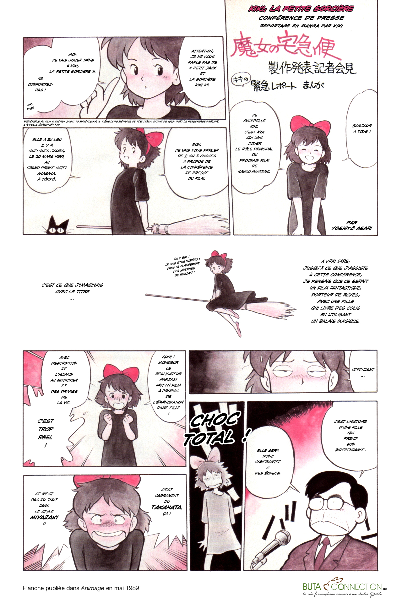 Une curiosité que ce manga de Yoshitô Asari, publié dans les pages du magazine Animage, en mai 1989, et qui revient sur la conférence de presse donnée à l’occasion de la production du film Kiki, la petite sorcière, en mars 1989.