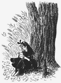 Kiki et Jiji font une pause sous un arbre. Kiki doit livrer le cadeau d'anniversaire que fait une fille à un garçon.