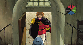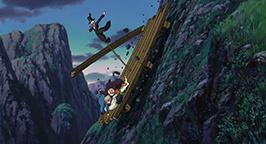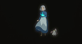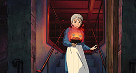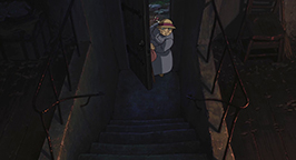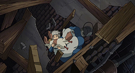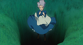 Sophie et Hihn se réveillent au fond du ravin, des morceaux du château éparpillés tout autour d'eux. Sophie sombre dans un profond désespoir, persuadée d'avoir tué Calcifer et donc Hauru. Mais Hihn lui indique la porte du château posés contre une des parois du ravin. La bague, remise par Hauru lors de leur fuite du Palais Royal, s'active et indique la porte. Sophie l'entrebâille et découvre un passage. En l'empruntant, elle ne tarde pas à comprendre qu'elle a ouvert une brèche temporelle vers le passé.