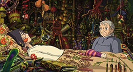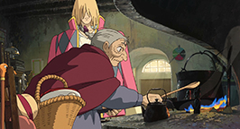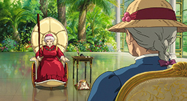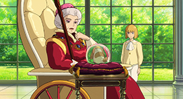 Sophie explique alors à la sorcière royale que le sorcier ne viendra pas. Mais Suliman n'est pas surprise. À son tour, elle lui avoue que Hauru était l'un de ses disciples les plus doués. Mais un démon s'est emparé de son cœur et l'a éloigné d'elle. Maintenant, il déborde d'une puissance menaçante et elle ne peut le tolérer. Elle doit le mettre hors d'état de nuire tout comme la sorcière des Landes. Une vieille dame est alors amenée dans la pièce et s'installe aux côtés de Sophie. Il s'agit de la sorcière des Landes ! Privée de ses pouvoirs, elle a retrouvé l'apparence de son âge : c'est maintenant une très vieille femme inoffensive et sénile.
