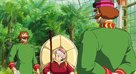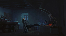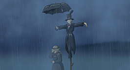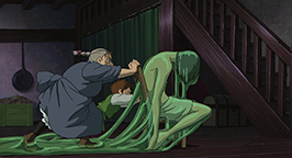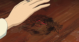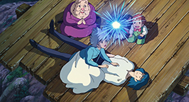 Choquée par tant de frivolité, Sophie laisse éclater sa colère. Comme peut-il être aussi futile ? Elle qui n'a jamais été belle ! Elle sort du château sous une pluie battante, et pleure à chaudes larmes sans pouvoir se calmer. Le réconfort viendra à nouveau de Navet qui lui porte un parapluie pour la protéger de l'eau. Sophie décide donc de rentrer au château. Elle transporte dans la salle de bains Hauru, englué dans un étrange liquide verdâtre qui menaçait d'engloutir le pauvre Calcifer.