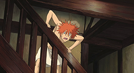 De retour au château, Sophie et Marko voient jaillir Hauru de la salle de bain en hurlant et en se tenant la tête entre les mains. Il s'écroule sur une chaise, s'arrachant sa chevelure, devenue rousse. Ses cheveux blonds changent de couleur et retrouvent leur couleur naturelle, un noir bleuté qui plonge Hauru dans un profond abattement. Sophie, dans son grand nettoyage a changé des lotions de place et a ainsi modifié les teintures que Hauru utilisait avec coquetterie. Persuadé d'avoir perdu sa beauté et son pouvoir de séduction, Hauru entre dans une grande dépression et en appelle aux forces de ténèbres afin de montrer son mécontentement.