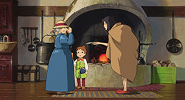 Sophie profite du voyage pour faire le ménage avec comme seule consigne de ne pas changer de place les objets de la maison. Sa tâche est rude car la propreté laisse à désirer tant Hauru, Marko et Calcifer semblent trois célibataires endurcis, sans réel sens de l'organisation ou de savoir-vivre. Alors qu'elle se démène, elle place Calcifer dans un petit récipient sans combustible. Calcifer menace de s'éteindre et implore l'aide de Sophie. Il a beau crier que s'il s'éteint, elle tuera Hauru, celle-ci fait la sourde oreille. Hauru arrive dans la pièce et sauve le démon, tout en demandant à Sophie de bien faire attention à Calcifer. Le château s'installe alors au bord d'un lac où la nouvelle petite famille prend ses aises.