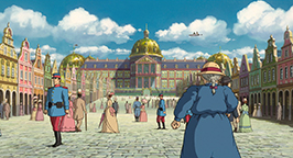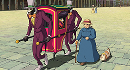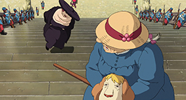 Sophie part donc vers le Palais Royal. En chemin, elle cherche à identifier Hauru sous sa forme d'emprunt. Elle le reconnaît finalement sous la forme d'un chien qui semble se joindre à sa route. Aux abords du Palais, Sophie et son compagnon canin sont rattrapés par la sorcière des Landes. Cette dernière la remercie d'avoir porté son message à Hauru. Elle lui explique, qu'elle aussi a été invitée par le roi. Elle a été chassée du palais il y a 50 ans et elle attend de revenir à la cour depuis ce jour. La sorcière accélère sa course et laisse Sophie derrière elle.