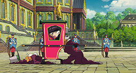 Dans le jardin du palais, un appareil volant se pose et le roi entre dans la pièce où sont réunies Sophie et les deux sorcières. Il se place auprès de Sophie, quand entre dans la pièce, quelques secondes plus tard, une seconde réplique du roi. Celui-ci part d'un grand éclat de rire devant son double et pense à une blague, avant de quitter la pièce. L'identité du « premier roi » est révélée : Venu chercher Sophie, Hauru s'est transformé en monarque. Suliman leur jette un sort et ils se retrouvent à flotter dans les airs. Suliman les encercle alors par une ronde d'étoiles qui semble maintenir Hauru dans un état d'hypnose total. Alors que Suliman s'apprête à lancer le sort définitif qui mettra à terre le magicien, Sophie pousse un cri salvateur qui réveille Hauru et fait dévier le sort par son chapeau.