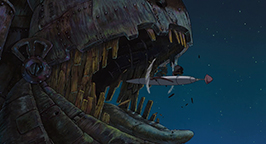 Le château rebâti, le bâtiment ne sera plus ambulant mais volant ! Et c'est dans les airs que tous les personnages de cette étrange petite communauté s'éloignent et reprennent la route.
