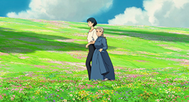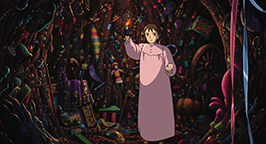Une autre s'ouvre maintenant sur le jardin secret de Hauru, un vaste champ de fleurs où se niche une petite maison, dans laquelle il a passé tous les étés de son enfance. Si les choses devaient mal tourner pour lui, Hauru souhaite les mettre tous à l'abri du danger. Cette déclaration fait à nouveau rajeunir Sophie. Hauru profite de l'occasion pour exprimer ses sentiments et la complimenter sur sa beauté. Mais la jeune femme, surprise, perd à nouveau confiance en elle et redevient une petite femme ridée. Des navires de guerre survolent bientôt le jardin de Hauru. Ce dernier, grâce à sa magie, met leur armement hors d'état de nuire. Les représailles ne se font pas attendre, des sous-sorciers s'échappent des navires. Hauru pousse Sophie vers le château et s'envole, l'ennemi à ses trousses.