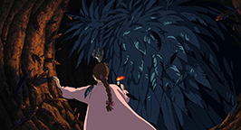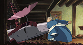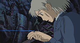 Plus tard, Hauru revient du front sous sa forme d'oiseau, plus mal en point que d'habitude. Cette fois, il ne parvient pas à reprendre un aspect humain. Il passe devant la sorcière des Landes et Sophie assoupies. Sophie, qui a recouvré sa forme de jeune fille, s'éveille et le suit dans sa chambre. Mais la pièce est maintenant à l'image des pensées intérieures de Hauru : la chambre enfantine a laissé place à un long tunnel sombre. Sophie le rejoint au fond de sa tanière et malgré son aspect repoussant, lui avoue son amour. Mais il fuit et Sophie retrouve son aspect de vieille femme avant de se réveiller en sursaut de ce mauvais rêve !