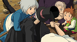 Cette situation est d'autant plus préoccupante que la guerre se rapproche. La ville de Sophie est attaquée et les sbires de la sorcière ont réussi à situer le foyer du Hauru. L'étreinte se fait de plus en plus précise et les espions de Suliman entourent bientôt la maison-façade. Hauru arrive à un moment critique et sauve Sophie de la mort en bloquant une bombe. Hauru décide alors de mettre fin à la guerre et repart immédiatement au combat. Sophie se réfugie dans la maison et ferme la porte sur les envoyés de Suliman. Elle active le mécanisme pour revenir dans les landes et contemple les combats qui embrasent au loin sa ville.