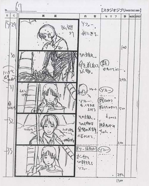 À partir de là, on revient au scénario classique de production d'un long métrage signé Hayao Miyazaki : les producteurs s'inquiètent de la longueur du film et surtout du retard pris par le réalisateur pour fournir les storyboards aux animateurs. En décembre 2003, on estimait que les animateurs avaient globalement réalisé plus de la moitié de leur travail ; mais personne ne savait réellement ce qu'il restait à faire car les storyboards n'étaient toujours pas achevés et arrivaient au fur et à mesure.