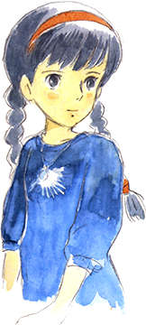 Sheeta est une descendante de la famille royale de Laputa et l'héritière légitime du trône de ce royaume légendaire. Son véritable nom laputien est Lusheeta Toel Ul Laputa. Mais la jeune fille ignore presque tout sur Laputa et sur ses propres origines royales. Elle ne connaît que quelques charmes pour sa pierre de lévitation, qu'elle a appris petite de sa grand-mère. Elle n'apprend l'existence de l'île flottante que lorsqu'elle rencontre Pazu.