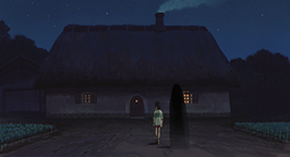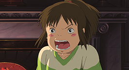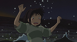 Apeurée la fillette s'enfuit pour rejoindre ses parents, mais elle croise dans sa course des silhouettes fantomatiques qui errent dans les rues de la ville. Quand elle retrouve ses parents, elle découvre épouvantée qu'ils se sont transformés en cochons ! Chihiro pense être victime d'un cauchemar et tente de revenir par où elle est arrivée. Mais la prairie qu'elle a traversée il y a quelques heures est maintenant inondée et l'on peut voir au loin le clocher de la chapelle illuminer l'étendue d'eau.