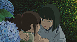 Tous remercient Zenîba et le sans-visage accepte l'invitation de la sorcière à rester avec elle. Sen chevauche le dragon qui s'envole. Agrippée aux cornes de l'animal, elle a soudain un violent flash-back. Elle se souvient de Haku et lui murmure son vrai nom : Kohaku. A ces mots Haku, qui retrouve son identité et sa liberté, reprend sa forme originelle de jeune homme. Haku est en réalité le dieu d'une rivière dans laquelle Chihiro avait failli se noyer lorsqu'elle était petite, en essayant de récupérer sa chaussure tombée dans l'eau. Haku l'avait alors sauvée en la ramenant sur la rive.