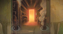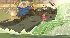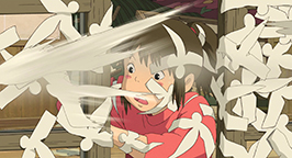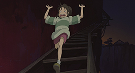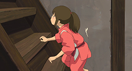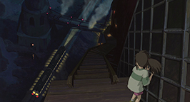 Chihiro est terrifiée : le vent souffle très fort et le chemin qui mène à la chaufferie est escarpé et accidenté. De plus, il n'y a pas de rampe pour s'agripper et le sol en contrebas est à plusieurs dizaines de mètres. Malgré quelques hésitations, elle trouve le courage d'affronter cette épreuve.