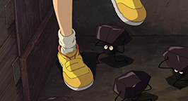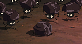 Sur le sol Chihiro remarque des noiraudes sur pattes amener continuellement le charbon jusqu'au foyer afin d'alimenter le feu. Kamajî refuse de faire travailler Chihiro, prétextant qu'il a bien assez de main-d'œuvre. La fillette regarde les noiraudes travailler, trimballant sur leur dos de lourds morceaux de charbon. Quand elle aperçoit une petite créature s'écrouler sous son fardeau elle décide de la libérer de sa charge. Chihiro demande si elle peut déposer le morceau de charbon à terre mais Kamajî lui répond qu'elle n'a qu'à continuer ce qu'elle a commencé. Chihiro s'exécute alors avec peine car le morceau de charbon semble peser très lourd.