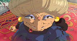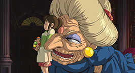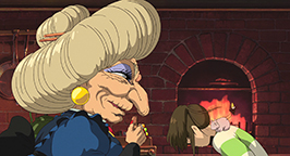 Une immense porte se dresse devant elle. La fillette essaie de la pousser pour entrer, mais en vain. La porte s'ouvrira finalement d'elle-même quelques secondes plus tard. Chihiro est conviée à entrer mais, hésitante, elle est soudainement happée par une force surnaturelle qui la tire à travers les différentes salles pour arriver enfin face au bureau de la maîtresse des lieux : Yubâba. Chihiro, après un instant d'hésitation, demande à travailler. Mais la sorcière lui rétorque qu'elle n'a pas besoin d'une fille aussi menue et pleurnicharde.