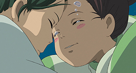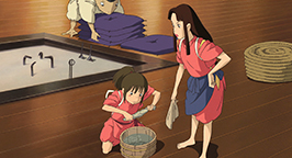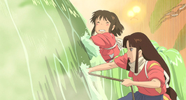 Pour remercier Sen, Zenîba confectionne, avec l'aide de Bô et Yubâ-bird, un nouveau ruban pour lui attacher les cheveux. Mais il est déjà l'heure pour Sen de repartir. En franchissant le seuil de la porte, la fillette découvre Haku sous forme de dragon venu pour la ramener aux bains. Sen est soulagée de le voir guéri de ses blessures.