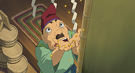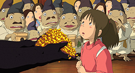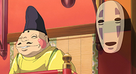 Mais un oiseau de papier vient subrepticement se coller dans son dos... En sortant du dortoir, la fillette découvre un établissement en effervescence. La folie de l'or s'est emparée du personnel des bains. Ils sont tous occupés à nourrir et servir le sans-visage qui engloutit les plats à une cadence infernale et enfle à vue d'oeil. En se faufilant dans la foule, Sen se trouve nez à nez avec le spectre qui lui offre une poignée d'or.