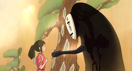 Mais Sen refuse son cadeau et repart en s'excusant. Le sans-visage, désespéré et furieux, avale deux employés, et crée du même coup la panique autour de lui. Quand Sen arrive enfin au dernier étage de l'établissement, elle entend Yubâba et se cache sous les coussins de la chambre de « bébé ».