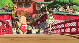 Le jeune garçon emmène ensuite Chihiro jusqu'au pont de leur première rencontre. Une multitude de divinités l'empruntent pour se rendre dans le grand bâtiment. Avant de traverser, le garçon demande à la fillette de retenir sa respiration sans quoi elle serait repérée. Mais sur le pont une grenouille qui connaît apparemment le jeune homme, l'interpelle ; Chihiro, surprise, ne peut s'empêcher de respirer. Le garçon jette alors un sort qui paralyse le batracien pendant quelque instants et court en entraînant Chihiro avec lui pour la cacher.
