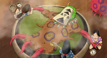 A l’origine dieu agricole vénéré au centre et au Nord du Japon, le personnage est tout simplement la divinité du radis dans le film.