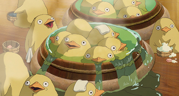 Dieu-poussin. Pour Hayao Miyazaki, à l’origine, ce sont sûrement des poussins qui ont été mangé !