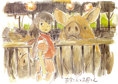 Enfin, un autre point de départ du Voyage de Chihiro est une anecdote racontée par Suzuki à Miyazaki. Ce dernier évoquait les bars à hôtesses, où ces dernières sont souvent des timides, contraintes d’apprendre à communiquer avec les hommes. Ces derniers paient pour également pouvoir s’exprimer. Cette image est restée gravée dans l’esprit de Miyazaki et l’a exploité dans son film : Chihiro est contrainte d’apprendre à s’exprimer quand elle sert dans les bains, tandis que le sans-visage ne parvient pas à s’exprimer et a recours à la violence et à l’argent pour pouvoir le faire.